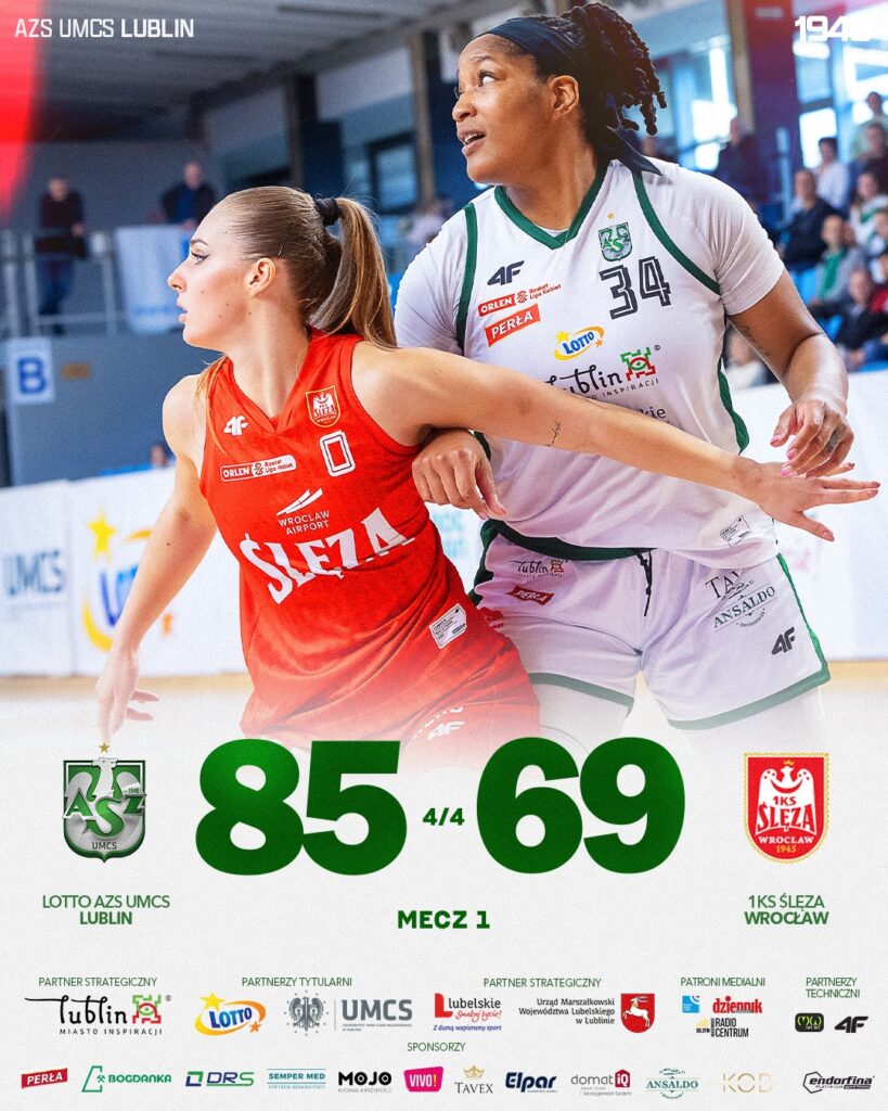 W starciu do trzech zwycięstw zawodniczki LOTTO AZS UMCS Lublin prowadzą 1-0. W środowe popołudnie w dobrym stylu pokonały drużynę Ślęzy Wrocław, czyniąc tym samym ważny krok w kierunku awansu. Jak wyglądało to spotkanie?