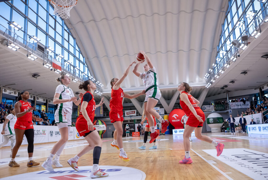 Zwycięstwo w spotkaniu Biało-Zielone zawdzięczają konsekwentnej, solidnej defensywie oraz dyscyplinie w ataku. Chociaż, szczególnie w trzeciej kwarcie, traciły punkty po stratach i błędach w powrocie do obrony, inne elementy realizowały na tyle konsekwentnie, aby móc cieszyć się wysokim zwycięstwem. Nie musiały polegać na znakomitej skuteczności z dystansu – zaufały swoim przewagom w innych fragmentach gry i pracy wykonanej na przestrzeni ostatnich miesięcy. W przedmeczowej zapowiedzi pisaliśmy, że prawdziwymi rywalkami Lublinianek będą w tej serii one same. Pierwszy mecz zdaje się tą tezę potwierdzać, a Biało-Zielone w starciu z samym sobą prowadzą 1-0.