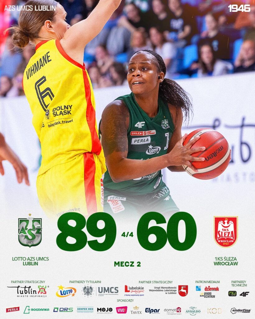 Po zwycięstwie w pierwszym meczu półfinałów Orlen Basket Ligi Kobiet z drużyną Ślęzy Wrocław Biało-Zielone nie miały wiele czasu na odpoczynek. Już kolejnego dnia, w czwartek 2 kwietnia, czekało je starcie numer 2. Czy zawodniczki LOTTO AZS UMCS Lublin obroniły przewagę własnego parkietu i jak potoczyło się spotkanie? Zapraszamy do lektury relacji!
